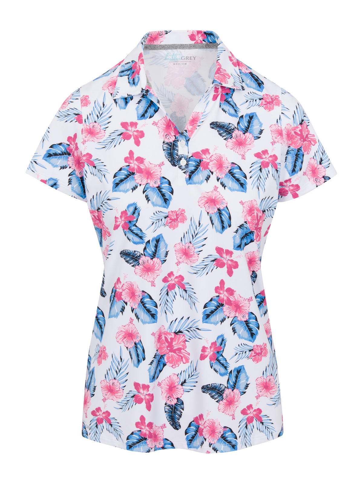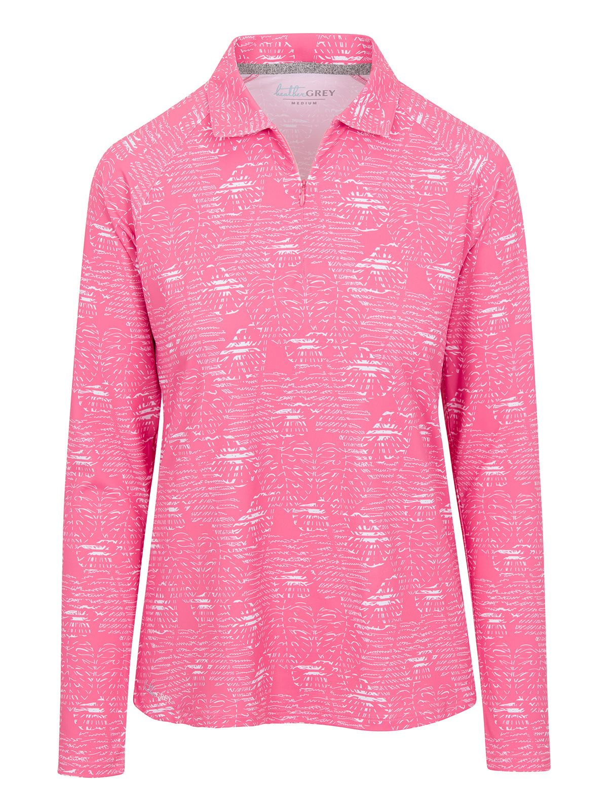 88% Polyester / 12% Spandex || Everyday essentials with our Heather Grey Women’s Printed Polo || A contemporary cut for the athletic build that comfortably fits each unique individual size || Self-collar, zip-front, sporty look ||...